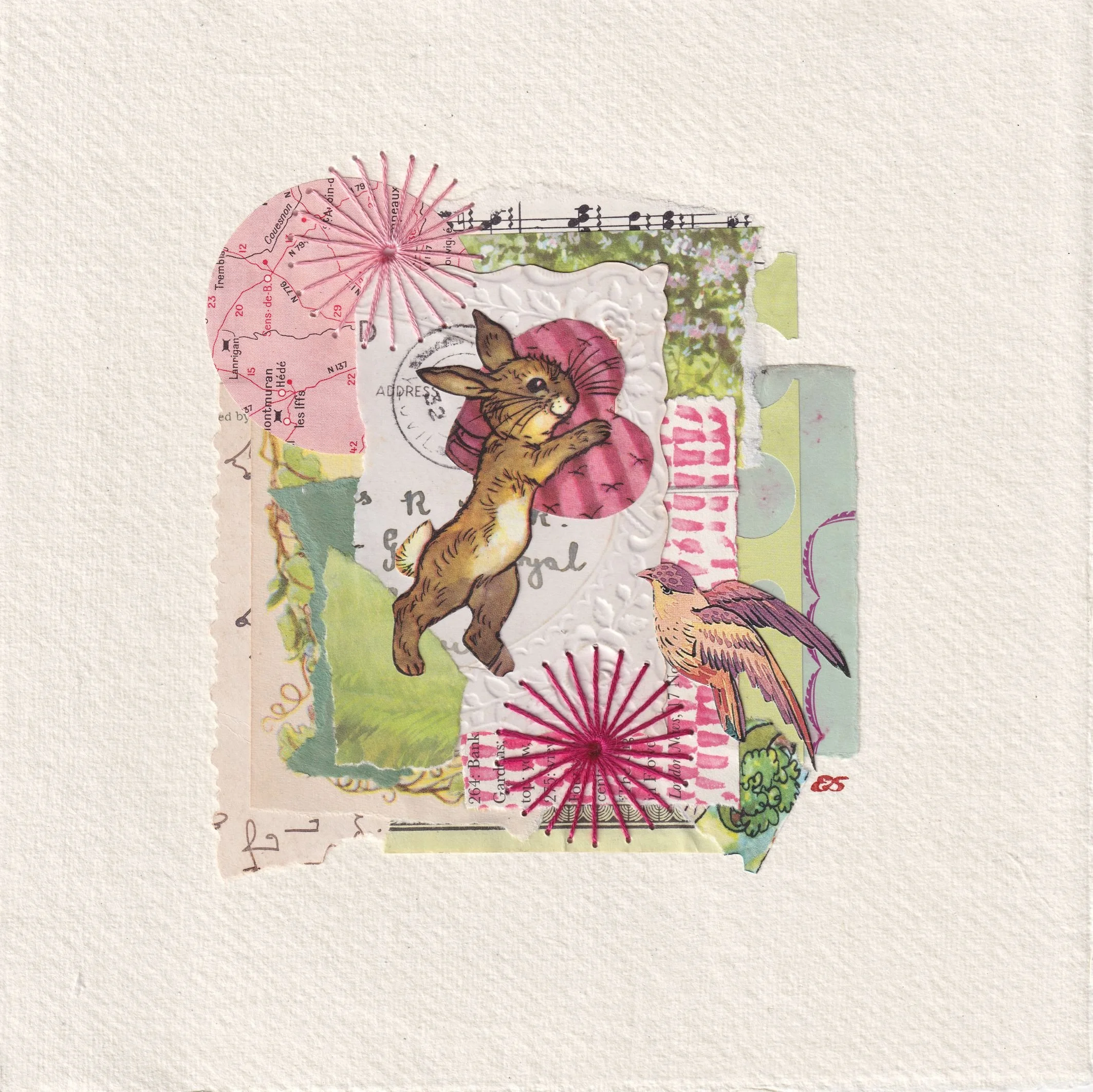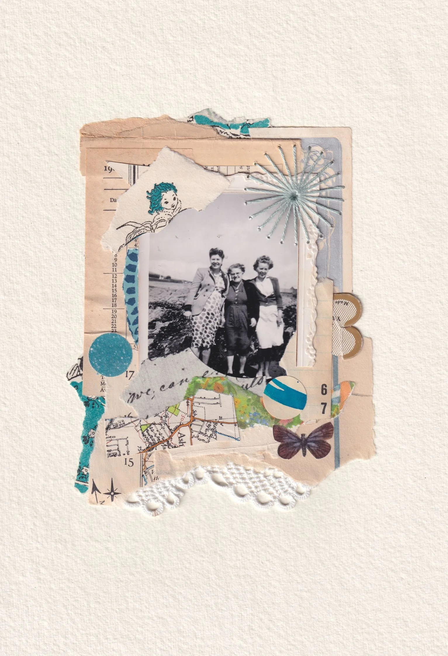 Collage using vintage materials. These pieces evoke a sense of time and place that’s otherworldly - they may be places or people that existed once upon a time, and are now lost to history. When I create a piece I reimagine them - places, feelings and stories made up of scraps or images, words, colour and texture. They are small works of art, unique and handmade using found, vintage papers and materials, and backed on either a vintage book board, or handmade paper. It’s really important to me to keep making and connecting with materials, and feeling my way to the stories they want to tell. Sometimes it’s someone else’s story - I’m just the maker creating a memory piece for a commission, and sometimes it’s a celebration of something - like a collection of photos and papers that speak of a loved one’s life, of their story.